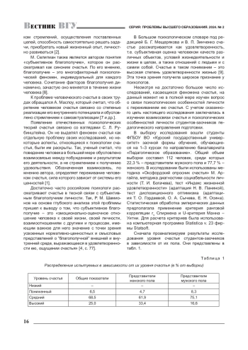 Статья: ВЗАИМОСВЯЗЬ СЧАСТЬЯ И ПСИХОЛОГИЧЕСКИХ ОСОБЕННОСТЕЙ ЛИЧНОСТИ СТУДЕНТОВ-ЗАОЧНИКОВ, ОБУЧАЮЩИХСЯ ПО НАПРАВЛЕНИЮ ПОДГОТОВКИ "ПЕДАГОГИЧЕСКОЕ ОБРАЗОВАНИЕ" (2024)