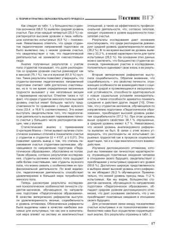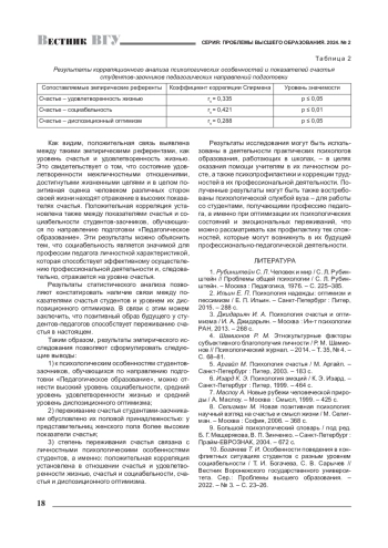БОГАЧЕВА Т. И., САРЫЧЕВ С. В. ВЗАИМОСВЯЗЬ СЧАСТЬЯ И ПСИХОЛОГИЧЕСКИХ ОСОБЕННОСТЕЙ ЛИЧНОСТИ СТУДЕНТОВ-ЗАОЧНИКОВ, ОБУЧАЮЩИХСЯ ПО НАПРАВЛЕНИЮ ПОДГОТОВКИ "ПЕДАГОГИЧЕСКОЕ ОБРАЗОВАНИЕ" // ВЕСТНИК ВОРОНЕЖСКОГО ГОСУДАРСТВЕННОГО УНИВЕРСИТЕТА. СЕРИЯ: ПРОБЛЕМЫ ВЫСШЕГО ОБРАЗОВАНИЯ. 2024. № 2