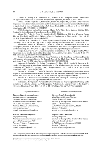 34. Seregin S. A., Popova E. V. Different-Scale Variations in the Abundance and Species Diversity of Metazoan Microzooplankton in the Coastal Zone of the Black Sea // Water Resources. 2019. Vol. 46, N. 5. P. 769-779. DOI: 10.1134/S009780781905018X