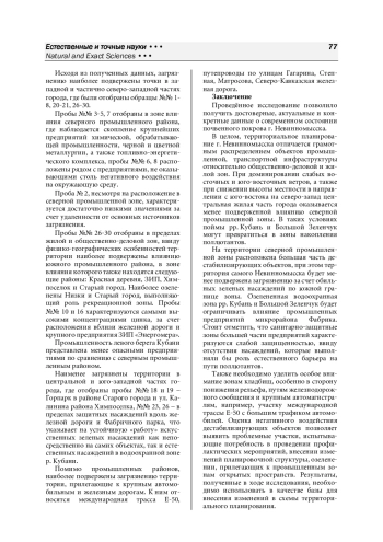 6. Паташова Е. С. Интенсивность геохимического загрязнения почвенного покрова в пределах города Изобильного Ставропольского края // Географические проблемы развития стран и регионов: сборник материалов III Международной научно-практической конференции / под ред. Н. А. Щитовой. Ставрополь: СКФУ, 2024. С. 334-340.