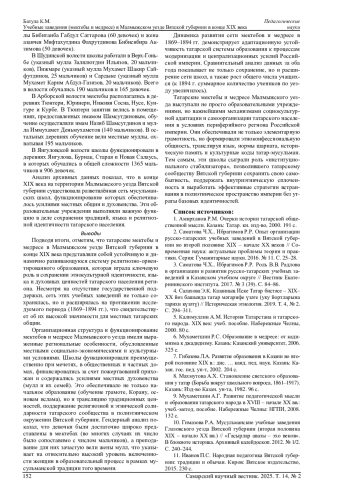 Статья: УЧЕБНЫЕ ЗАВЕДЕНИЯ (МЕКТЕБЫ И МЕДРЕСЕ) В МАЛМЫЖСКОМ УЕЗДЕ ВЯТСКОЙ ГУБЕРНИИ В КОНЦЕ XIX ВЕКА (2025)