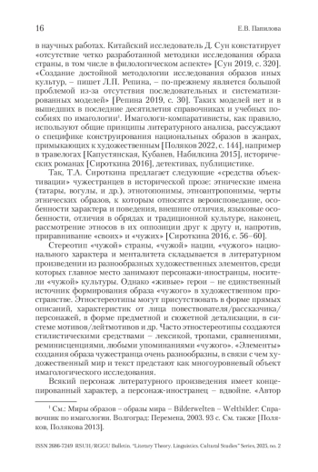 Литературоведческая имагология как дисциплина компаративистики (сравнительного литературоведения), изучающая стереотипные образы «других», «чужих» наций, стран, культур, традиций и религий в текстах художественной литературы, уже довольно прочно закрепилась в науке. Однако ее теоретические основы все же не сформировались окончательно. Это касается и понятийного аппарата, и методологии исследования. В статье предлагается механизм анализа образа «чужого», прежде всего – персонажа-иностранца. Автор выделяет следующие «элементы» анализа: портрет, костюм, возраст, «говорящие» имена героев, их речевая характеристика, предыстория, социальный статус (сословие, профессия), предметная детализация, хронотоп, высказываемые характеристики, степень «обруселости», национальное самосознание, национальный характер, менталитет, обозначение автором персонажа как «типичного» представителя своей нации, использование антитезы для выявления различий между «своими» и «чужими», раскрытие персонажа в сюжете, его место в системе персонажей. Кроме того, мотивы в произведении, ценностная позиция автора (выражающаяся в тональности повествования, его эмоциональном колорите) и даже сам жанр произведения могут также нести в себе имагологическую информацию. Таким образом, художественный текст – многоуровневый объект имагологического анализа, в котором даже незначительные, на первый взгляд, элементы могут нести в себе ценную информацию для исследователя. Теоретические положения подкреплены примерами анализа из русской художественной литературы XIX в. Статья содержит краткую библиографию по состоянию данного вопроса в современной науке.
