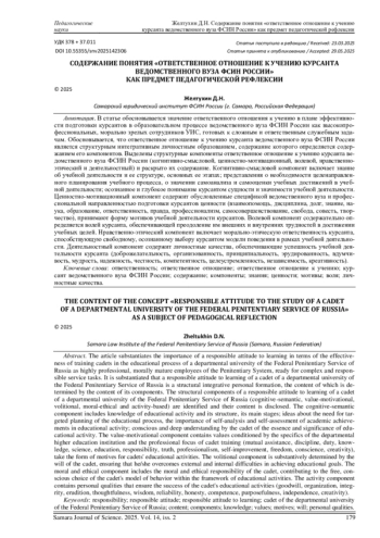 ЖЕЛТУХИН Д. Н. СОДЕРЖАНИЕ ПОНЯТИЯ «ОТВЕТСТВЕННОЕ ОТНОШЕНИЕ К УЧЕНИЮ КУРСАНТА ВЕДОМСТВЕННОГО ВУЗА ФСИН РОССИИ» КАК ПРЕДМЕТ ПЕДАГОГИЧЕСКОЙ РЕФЛЕКСИИ // САМАРСКИЙ НАУЧНЫЙ ВЕСТНИК. 2025. ТОМ 14, № 2