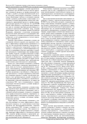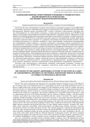 Статья: СОДЕРЖАНИЕ ПОНЯТИЯ «ОТВЕТСТВЕННОЕ ОТНОШЕНИЕ К УЧЕНИЮ КУРСАНТА ВЕДОМСТВЕННОГО ВУЗА ФСИН РОССИИ» КАК ПРЕДМЕТ ПЕДАГОГИЧЕСКОЙ РЕФЛЕКСИИ (2025)