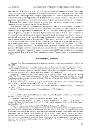 5. Berecz Á. Top-down and bottom-up Magyarization in multi-ethnic Banat towns under dualist Hungary (1867-1914) // European Review of History. 2021. № 3. P. 422-440.