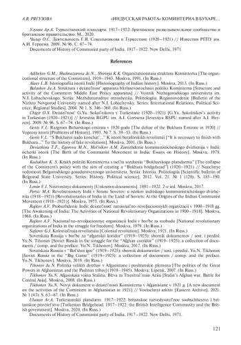 17. Тихонов Ю.Н. Новый документ о деятельности Коминтерна в Афганистане в 1921 г. // Восточный архив. 2021. № 1 (43). С. 63-67. EDN: CQCMFC