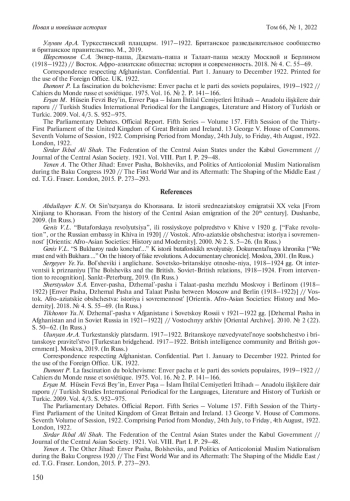 5. Тихонов Ю.Н. Джемаль-паша в Афганистане и Советской России в 1921-1922 гг. // Восточный архив. 2010. № 2 (22). C. 50-62. EDN: PAYCDP