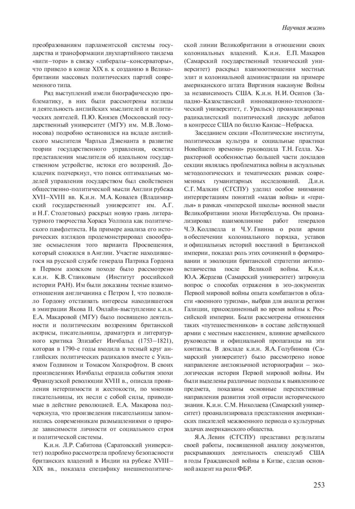 13–14 мая 2021 г. в Самарском филиале Московского городского педагогического университета состоялась II Всероссийская научно-практическая конференция «Политические институты, политическая культура и социальные практики от античных держав до глобальных империй», посвященная памяти известного самарского историка проф. С. Б. Семёнова (1954–2018) 1. Главной сферой его научных интересов было изучение развития политической мысли и парламентаризма в Британии2. Конференция, прошедшая в очном и онлайн-формате, объединила более 40 участников из Самары, Москвы, Владимира, Орла, Рязани и Саратова, а также Уральска (Казахстан)