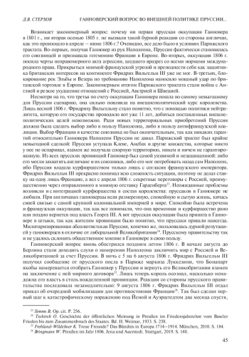 В начале XIX в. основным направлением внешней политики королевства Пруссия являлась борьба за гегемонию в северной Германии. В рамках этого направления прусская политическая элита пыталась решить так называемый ганноверский вопрос – сложную международную проблему, связанную с претензиями сразу трех великих держав, а именно Великобритании, Франции и Пруссии, на курфюршество Ганновер. В научной литературе ганноверский вопрос, как правило, рассматривается в контексте международных отношений начала XIX в. Это касается, к примеру, работ Пола Шрёдера 1 и Амира Бернштайна 2. Большое внимание в историографии уделяется англоганноверской унии и ганноверской проблеме как части британской внешней политики 3. Применительно к Пруссии ганноверский вопрос анализируется в рамках прусской политики нейтралитета, именно в таком ключе затрагивает эту тему австралийский историк Филипп Дуайер 4. Прусские попытки решить ганноверский вопрос в свою пользу бегло упоминаются в общих работах, посвященных истории Пруссии конца XVIII – начала XIX в. 5 Комплексную оценку роли и значения ганноверского вопроса для внешней и внутренней политики Пруссии, однако, эти работы не дают. Крупных исследований по данному вопросу в отечественной историографии не проводилось