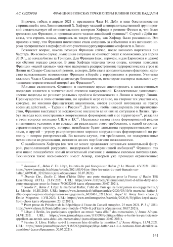 36. Gillon J. France-Libye: le maréchal Haftar, l’ami controversé de l’Élysée // Jeune Afrique. 18.III.2020. URL: https://www.jeuneafrique.com/mag/909987/politique/le-marechal-haftar-lami-libyen-controverse-de-lelysee/ (access date: 30.07.2021).
