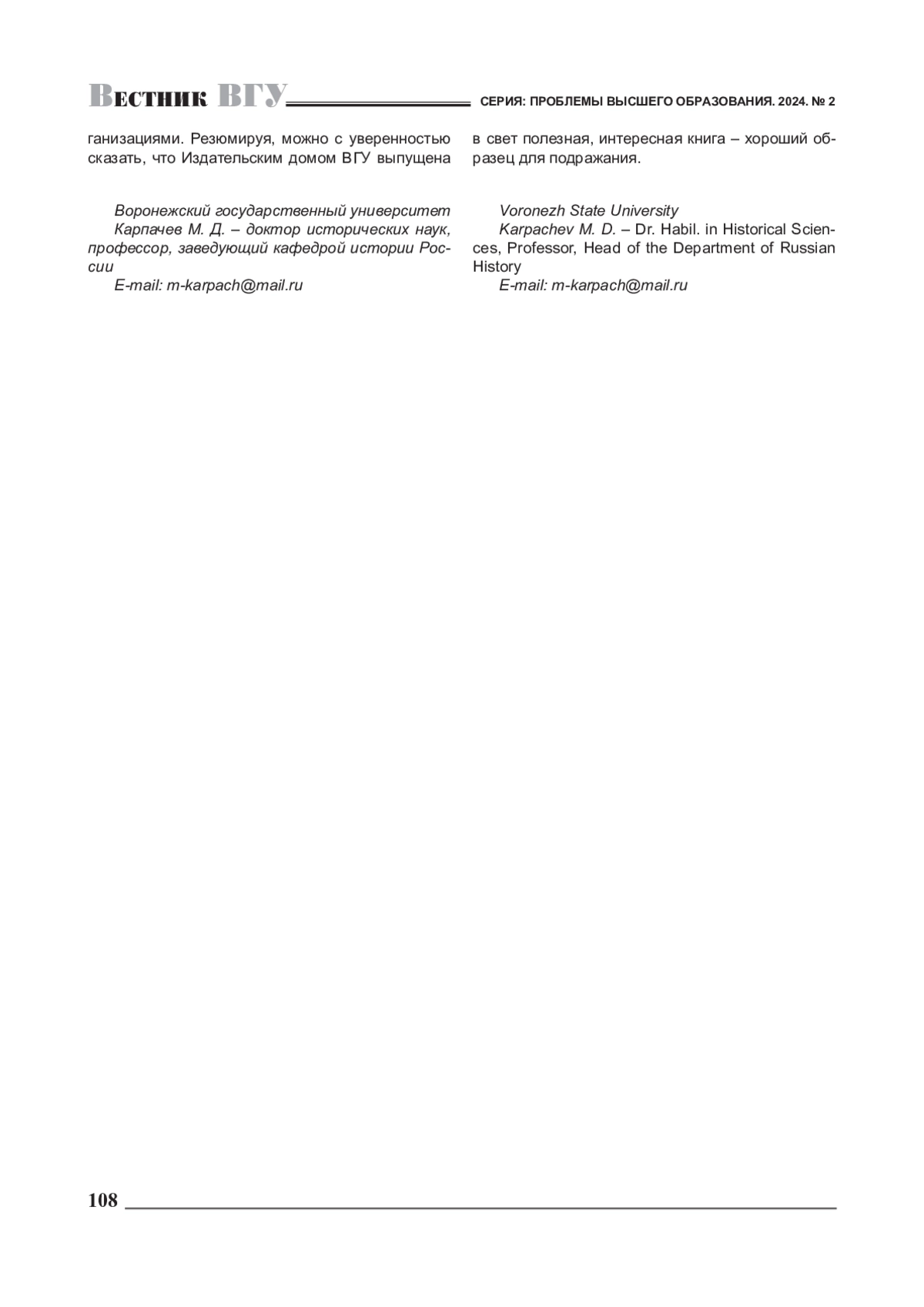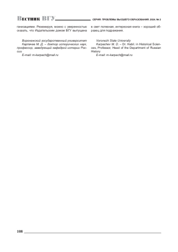 В феврале 2023 г. кафедрой социологии и политологии исторического факультета Воронежского государственного университета был проведен круглый стол, посвященный трансформации системы высшего образования в Российской Федерации. Был затронут ряд важных проблем, связанных с нынешним состоянием системы высшего образования и возможными результатами ее реформирования