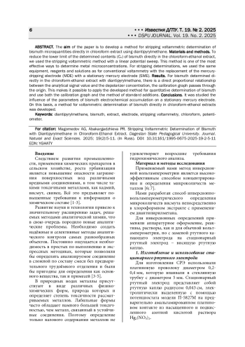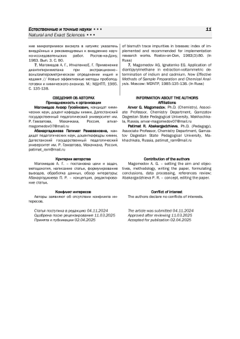 7. Магомедов А. Г., ИгнатенкоЕ. Г. Применение диантипирилметана при экстракционно-вольтамперометрическом определении индия и кадмия // Новые эффективные методы пробоподготовки и химического анализа. М.: МДНТП, 1985. С. 135-138.