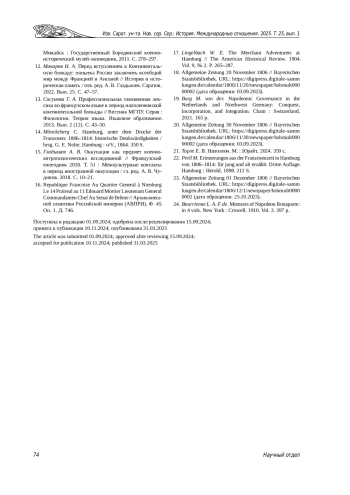 2. Aaslestad K. B. Paying for War: Experiences of Napoleonic Rule in the Hanseatic Cities // Central European History. 2006. Vol. 39, iss. 4. P. 641-675.