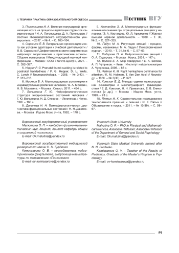 5. Hepper P G. Prenatal thumb sucking is related to postnatal handedness / P. G. Hepper, D. L. Wells, C. Lynch // Neuropsychologia. - 2005. - № 3(43). -P. 313-315.