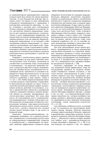 В статье актуальная проблема вытеснения ненормативной лексики из коммуникативного взаимодействия в молодежной среде рассматривается в контексте воспитания, основанного на глубоком понимании и студентами, и преподавателями ее пагубного влияния на сознание и мировоззрение личности. Рассматриваются особенности использования методов воспитания, направленных на решение тактических и стратегических задач вытеснения ненормативной лексики из коммуникативного взаимодействия студентов.