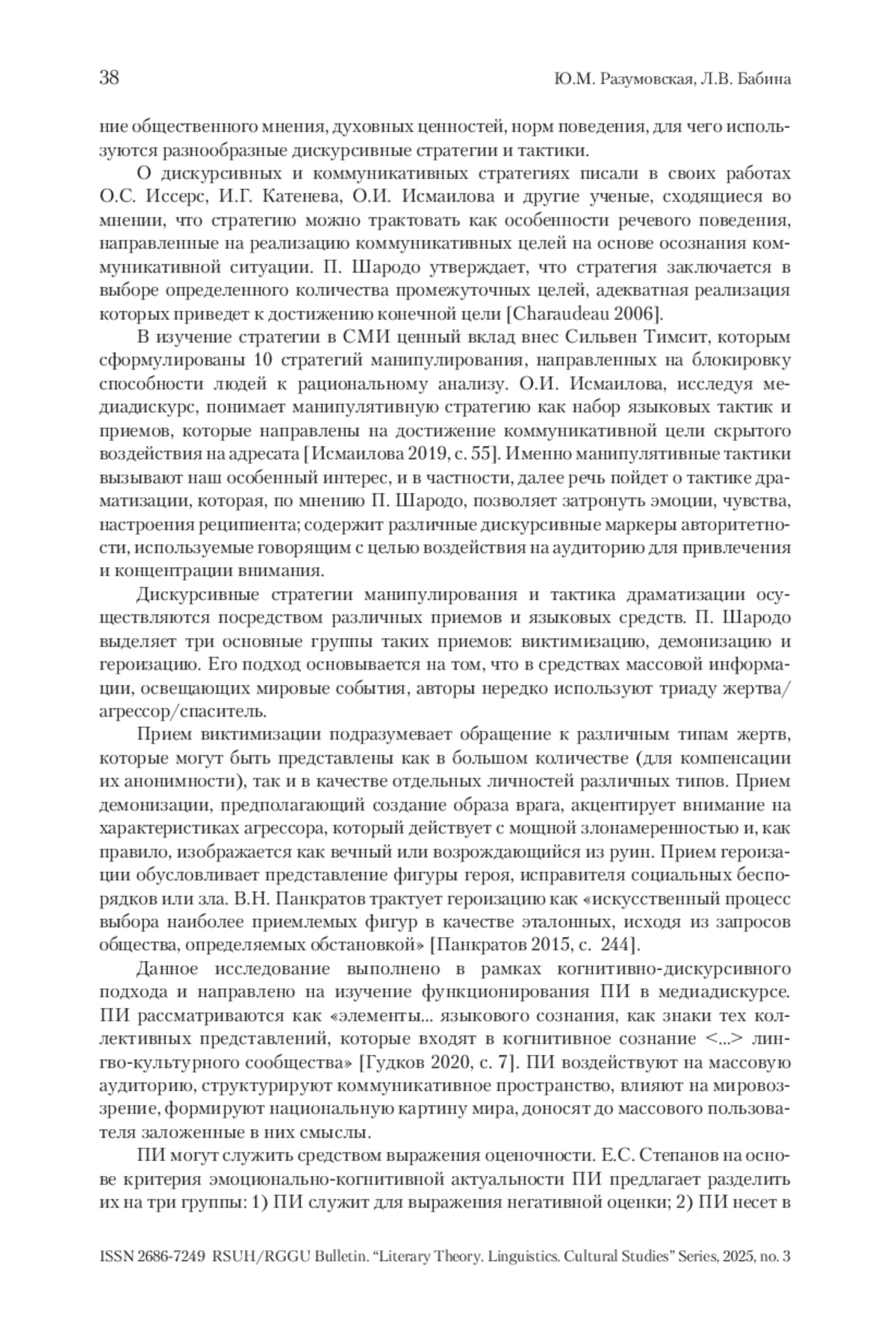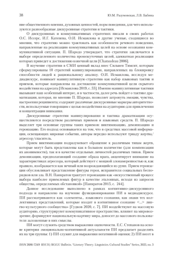 2. Исмаилова 2019 - Исмаилова О.И. Языковые средства реализации деструктивных речевых стратегий в российском и британском медиаполитическом дискурсе // Политическая лингвистика. 2019. № 3 (75). С. 54-59.