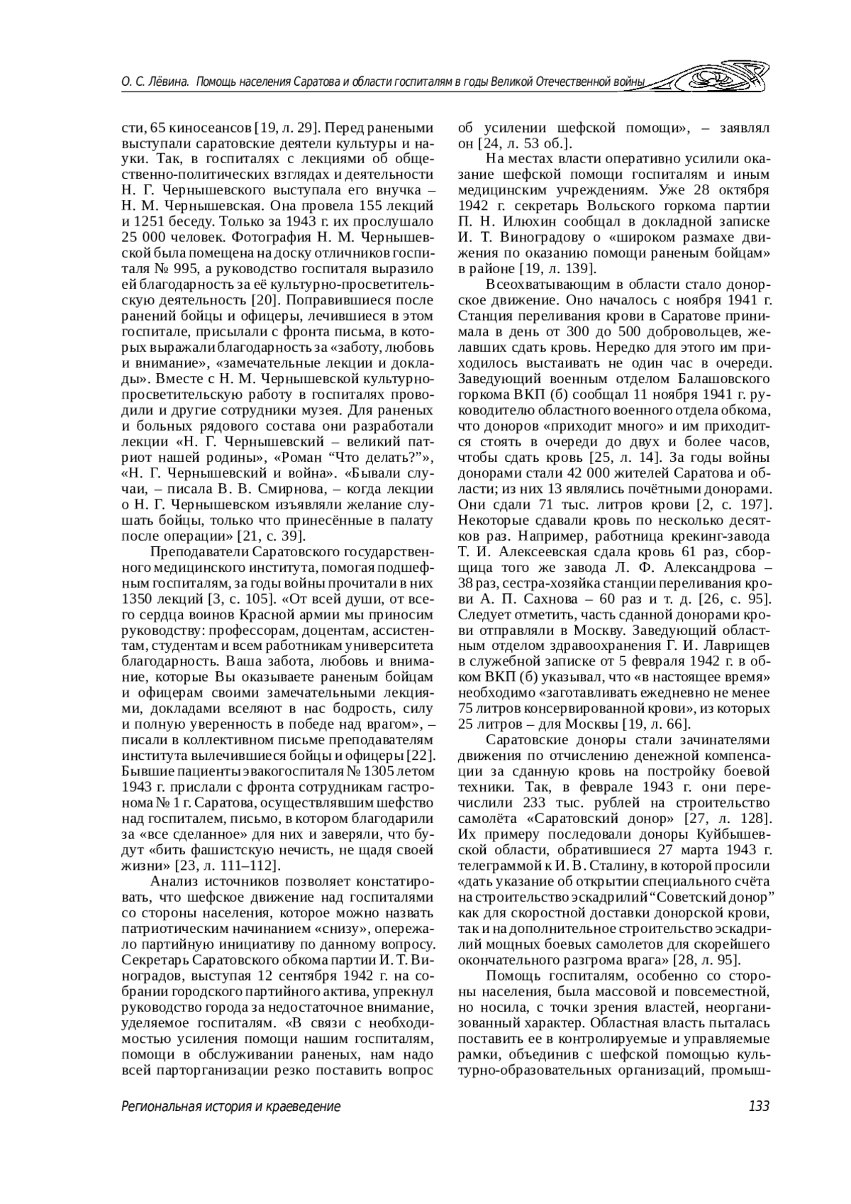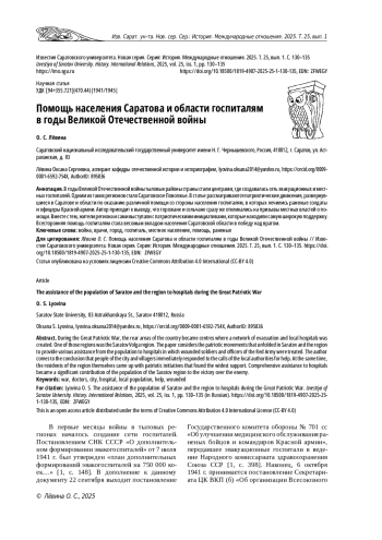 В годы Великой Отечественной войны тыловые районы страны стали центрами, где создавалась сеть эвакуационных и местных госпиталей. Одним из таких регионов стало Саратовское Поволжье. В статье рассматриваются патриотические движения, развернувшиеся в Саратове и области по оказанию различной помощи со стороны населения госпиталям, в которых лечились раненые солдаты и офицеры Красной армии. Автор приходит к выводу, что горожане и сельчане сразу же откликались на призывы местных властей о помощи. Вместе с тем, жители региона и сами выступали с патриотическими инициативами, которые находили самуюширокую поддержку. Всесторонняя помощь госпиталям стала весомым вкладом населения Саратовской области в победу над врагом.