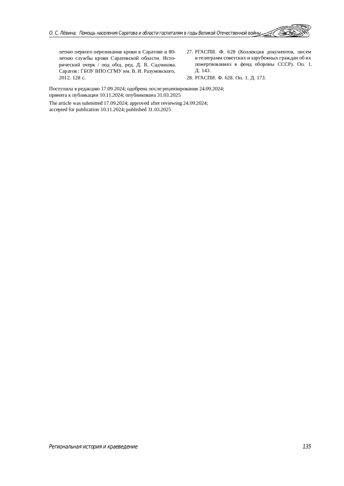 3. Фролов Д. Ф. Саратовская областная партийная организация в борьбе за оказание помощи раненым воинам Советской Армии в период Великой Отечественной войны (1941-1945 гг.): дис. … канд. ист. наук. Саратов, 1951. 322 с.