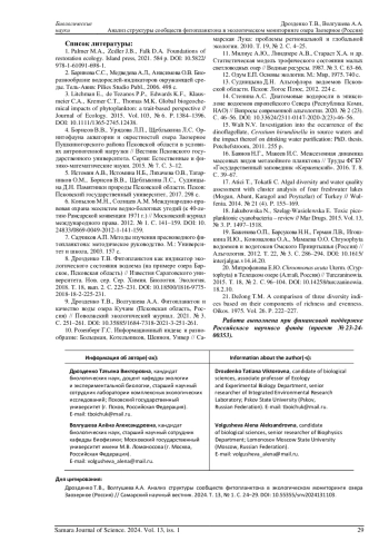 9. Дрозденко Т.В., Волгушева А.А. Фитопланктон и качество воды озера Кучане (Псковская область, Россия) // Поволжский экологический журнал. 2021. № 3. С. 251-261. DOI: 10.35885/1684-7318-2021-3-251-261 EDN: AEMPBY