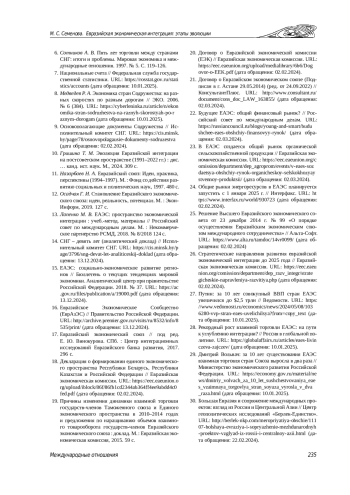 3. Иванова Е. М. Евразийская интеграция: путь от СНГ к ЕАЭС // Российский внешнеэкономический вестник. 2015. № 6. С. 112-119. EDN: TXOHRT