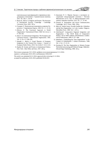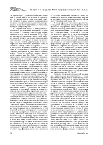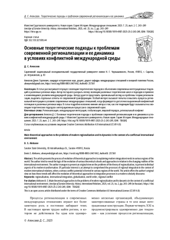 АЛЕКСЕЕВ Д. С. ОСНОВНЫЕ ТЕОРЕТИЧЕСКИЕ ПОДХОДЫ К ПРОБЛЕМАМ СОВРЕМЕННОЙ РЕГИОНАЛИЗАЦИИ И ЕЕ ДИНАМИКА В УСЛОВИЯХ КОНФЛИКТНОЙ МЕЖДУНАРОДНОЙ СРЕДЫ // ИЗВЕСТИЯ САРАТОВСКОГО УНИВЕРСИТЕТА. НОВАЯ СЕРИЯ. СЕРИЯ: ИСТОРИЯ. МЕЖДУНАРОДНЫЕ ОТНОШЕНИЯ. 2025. Т. 25 № 2