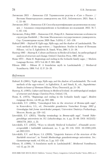 2. Литовских 2021 - Литовских Е.В. Терминология родства в «Саге о Ньяле» // Вестник Нижегородского университета им. Н.И. Лобачевского. 2021. Вып. 4. С. 53-60.