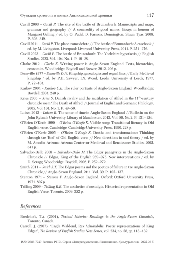 7. Cavill 2023 - Cavill P. The battle of Brunanburh: The Yorkshire hypothesis // English Studies. 2023. Vol. 104. No. 1. P. 19-38.
