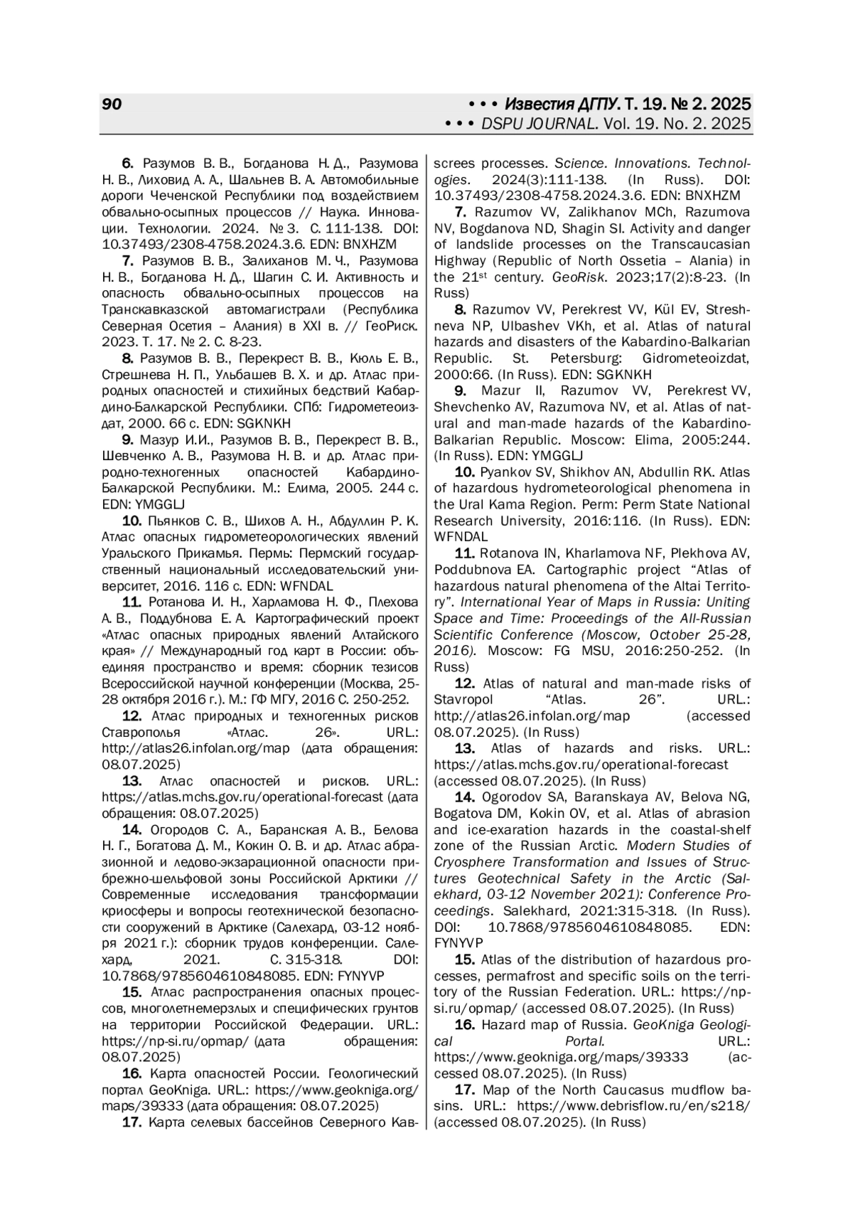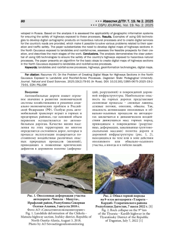РАЗУМОВ В. В. К ПРОБЛЕМЕ СОЗДАНИЯ ЦИФРОВЫХ КАРТ УЧАСТКОВ АВТОМОБИЛЬНЫХ ДОРОГ СЕВЕРНОГО КАВКАЗА, ПОДВЕРЖЕННЫХ ОПОЛЗНЕВЫМ И ОБВАЛЬНО-ОСЫПНЫМ ПРОЦЕССАМ // ИЗВЕСТИЯ ДАГЕСТАНСКОГО ГОСУДАРСТВЕННОГО ПЕДАГОГИЧЕСКОГО УНИВЕРСИТЕТА. ЕСТЕСТВЕННЫЕ И ТОЧНЫЕ НАУКИ. 2025. № 2, ТОМ 19