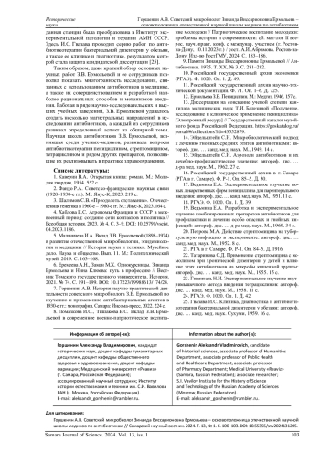 7. Горшенин А.В. История научно-практической деятельности советского микробиолога З.В. Ермольевой по изучению и применению антибактериальных агентов в 1930-е гг.: монография. Самара: Инсома-пресс, 2022. 224 с.