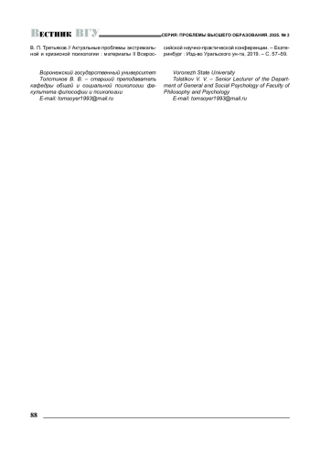Журнал: ВЕСТНИК ВОРОНЕЖСКОГО ГОСУДАРСТВЕННОГО УНИВЕРСИТЕТА. СЕРИЯ: ПРОБЛЕМЫ ВЫСШЕГО ОБРАЗОВАНИЯ