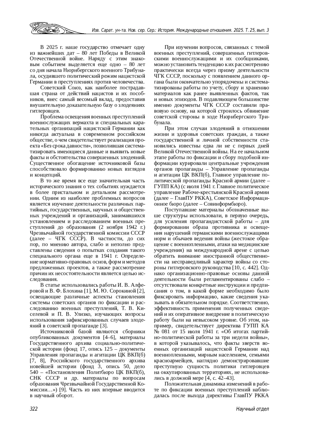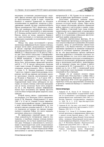 1. Алферова И. В., Блохин В. Ф. Основание и деятельность Чрезвычайной государственной комиссии по установлению и расследованию злодеяний немецко-фашистских захватчиков (1942-1945 гг.) // Вестник Брянского государственного университета. 2020. № 4. С. 9-19. DOI: 10.22281/2413-9912-2020-04-04-09-19 EDN: OMPAOC