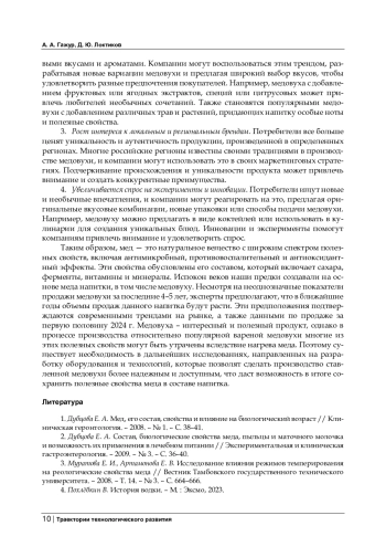 Svinina A. A., Kryukova E. V. Izuchenie i ispolzovanie produktov pchelovodstva [Study and Use of Bee Products], Pishcha. Ekologiya. Kachestvo. Trudy XI mezhdunarodnoy nauchno-prakticheskoy konferentsii [Food. Ecology. Quality. Proceedings of the XI International Scientific and Practical Conference]. Ekaterinburg, Uralskiy gosudarstvennyy ekonomicheskiy universitet, pp. 189-191. (In Russ.)