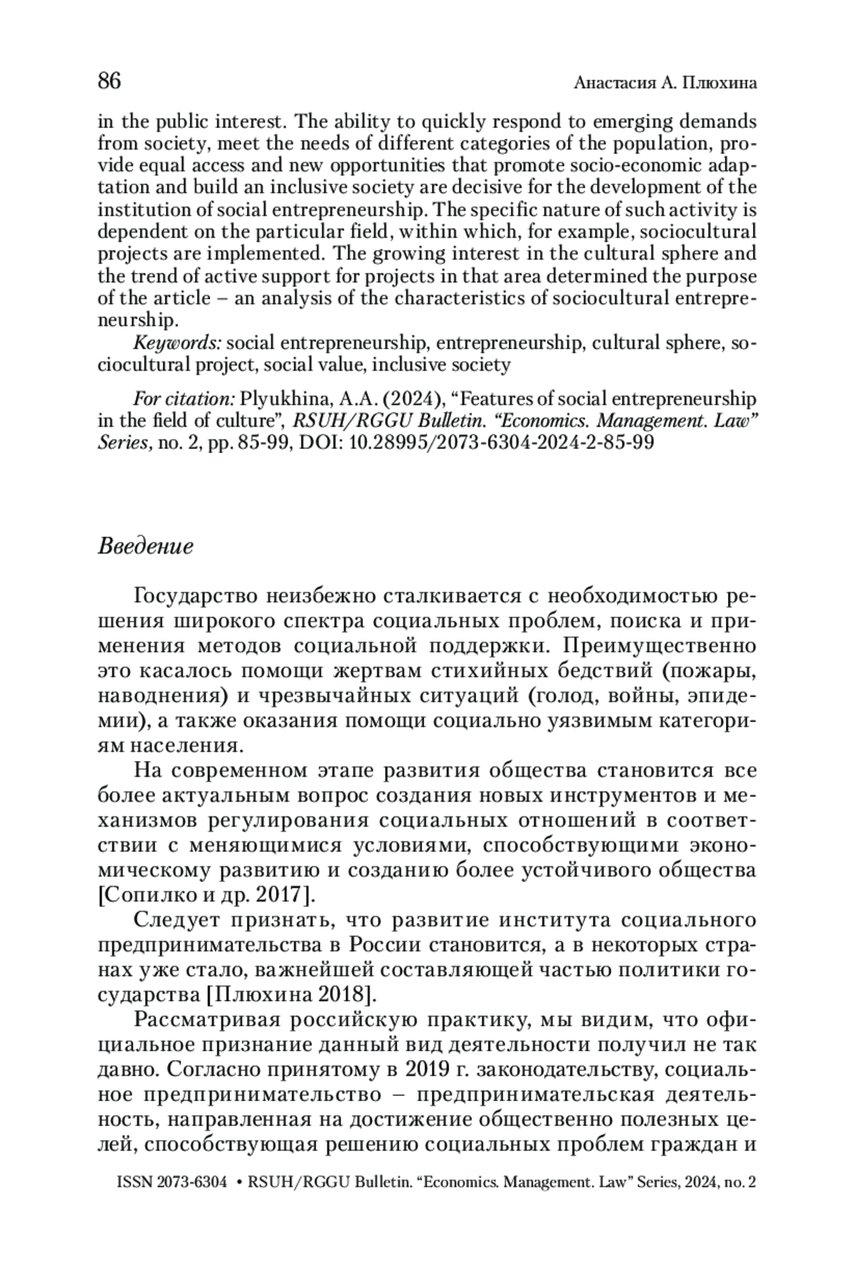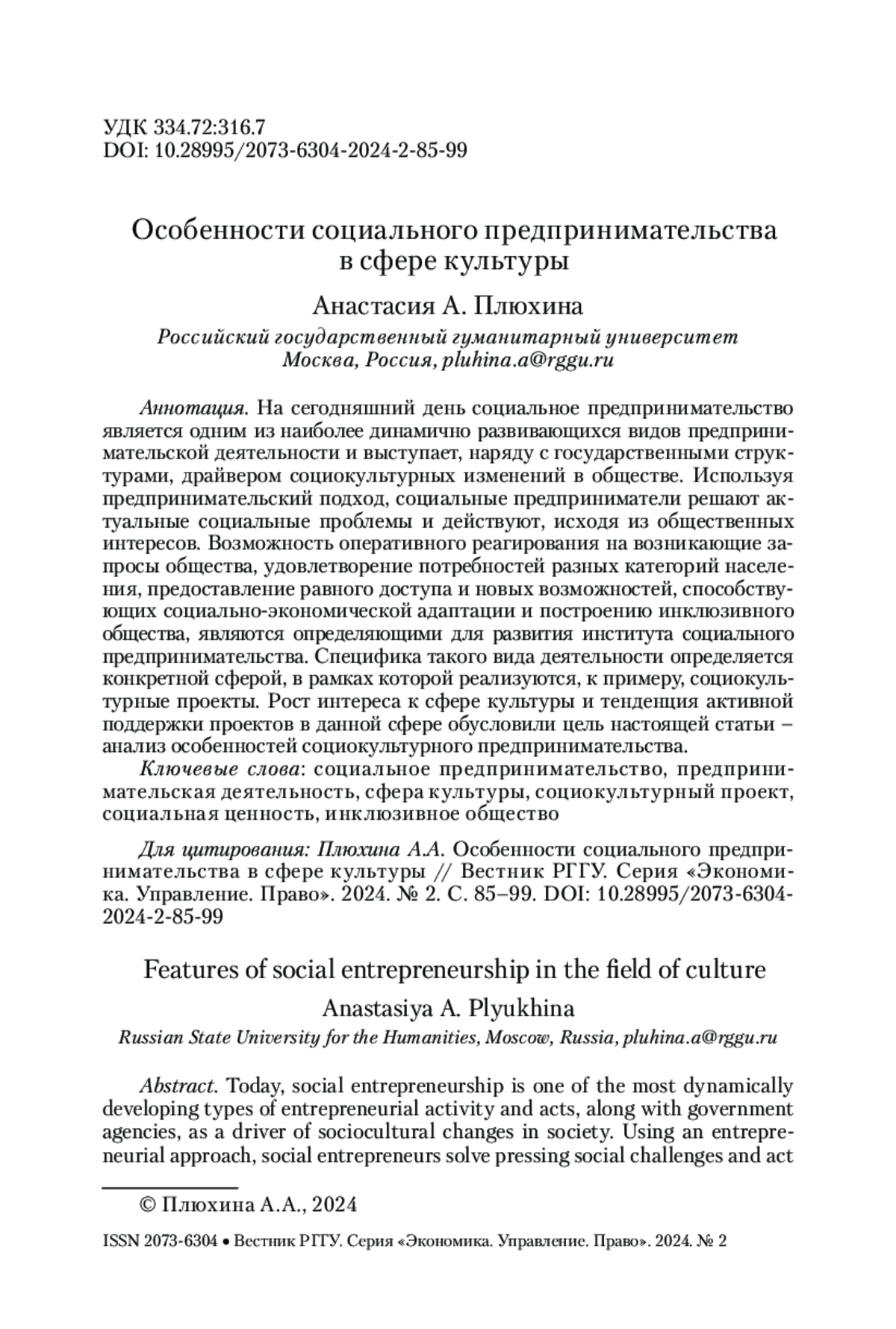 2. Плюхина 2018 - Плюхина А.А. Экономическое содержание и принципы функционирования современного социального предпринимательства // Человеческий капитал и профессиональное образование. 2018. № 1 (25). С. 31-39.