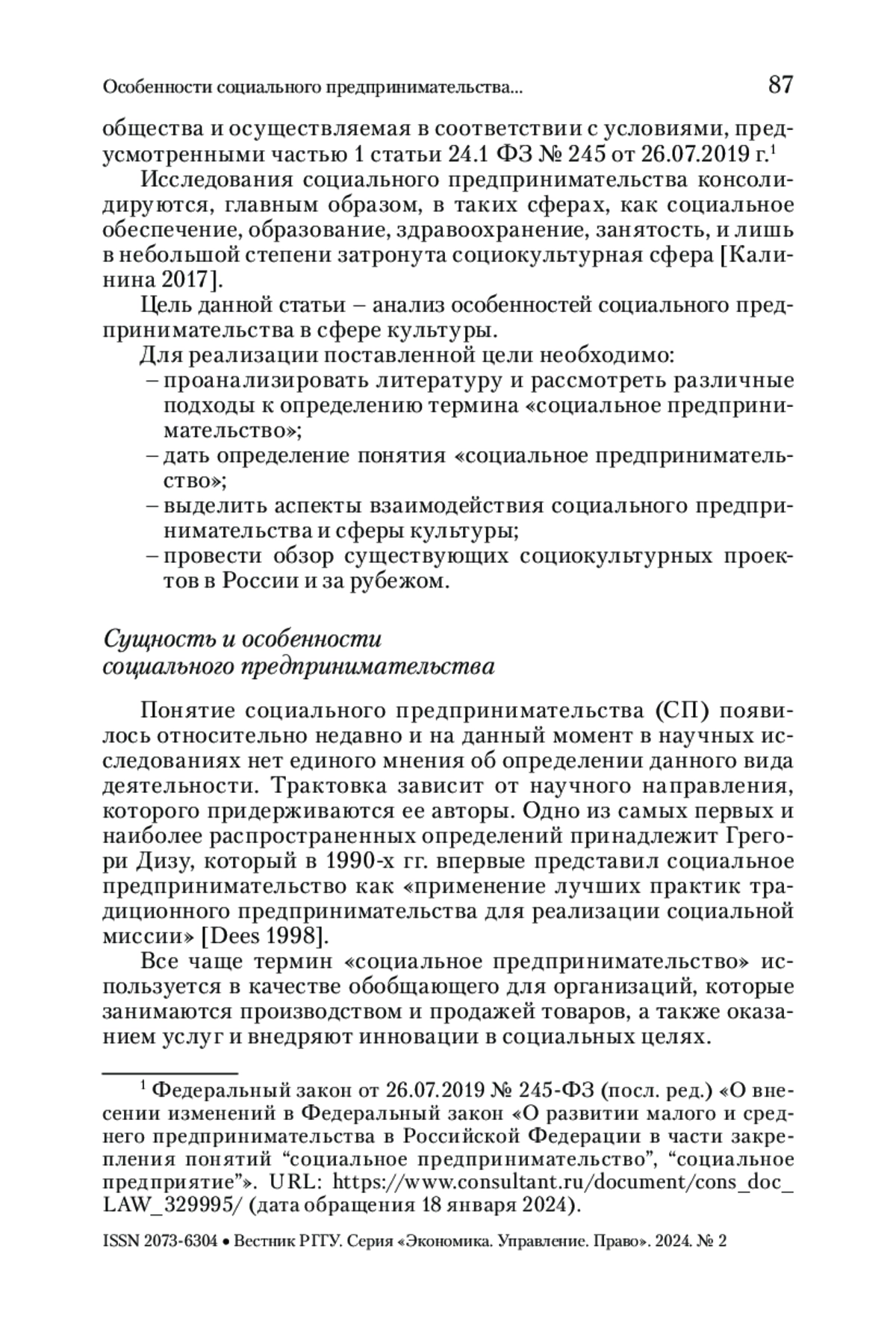 1. Калинина 2017 - Калинина Л.Л. Активизация социальных функций российского предпринимательского сектора как условие построения социального государства // Вестник РГГУ. Серия: Экономика. Управление. Право. 2017. № 3 (9). С. 61-71.