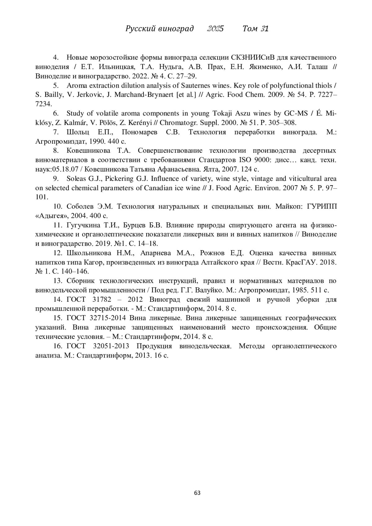 Статья: ЛИКЕРНЫЕ ВИНА ИЗ НОВЫХ СОРТОВ СЕЛЕКЦИИ ВНИИВиВ – ФИЛИАЛ ФГБНУ ФРАНЦ (2025)