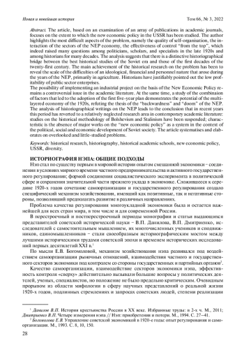 Ключевые фразы: ИСТОРИЧЕСКИЕ ИССЛЕДОВАНИЯ, историография, исторические научные школы, новая экономическая политика, СССР, МНОГОУКЛАДНОСТЬ