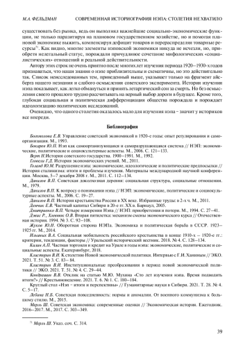 ФЕЛЬДМАН М. А. СОВРЕМЕННАЯ ИСТОРИОГРАФИЯ НЭПА: СТОЛЕТИЯ НЕ ХВАТИЛО // НОВАЯ И НОВЕЙШАЯ ИСТОРИЯ. 2022. № 3