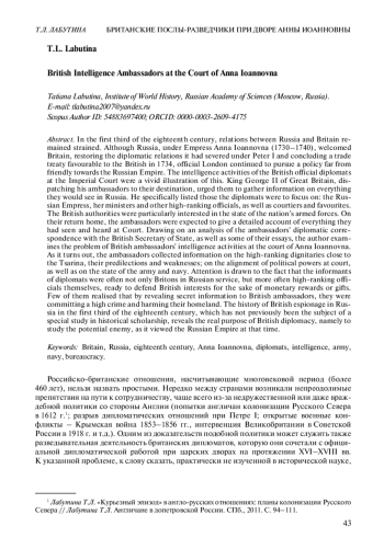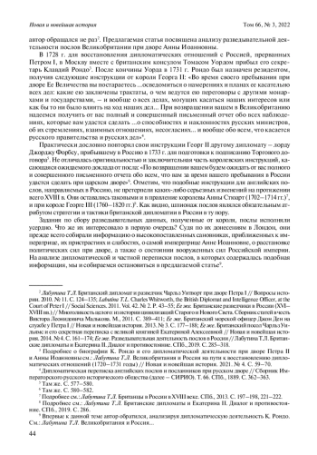 6. Лабутина Т.Л. Великобритания и Россия на пути к восстановлению дипломатических отношений (1720-1731 годы) // Новая и новейшая история. 2021. № 4. С. 59-70. EDN: TBZNLI