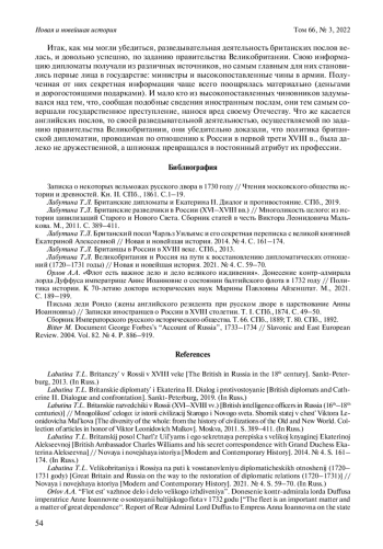 2. Лабутина Т.Л. Британские дипломаты и Екатерина II. Диалог и противостояние. СПб., 2019. EDN: TTBCEZ