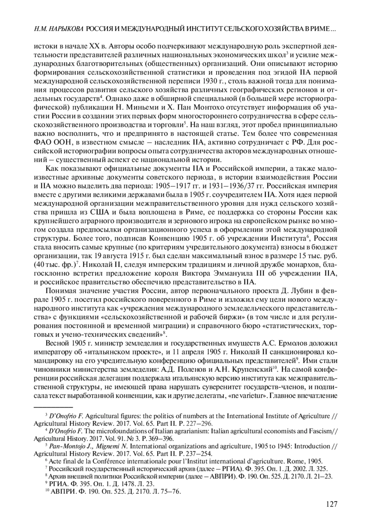 16. D’Onofrio F. Agricultural figures: the politics of numbers at the International Institute of Agriculture // Agricultural History Review. 2017. Vol. 65. Part II. P. 227-296.