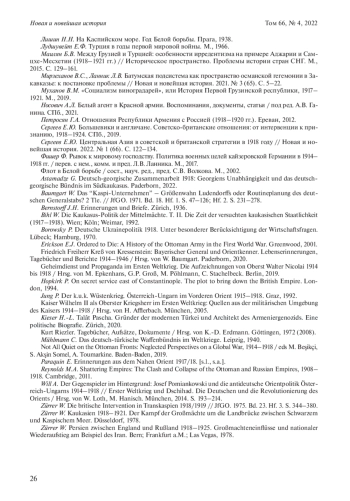 24. Bihl W. Die Kaukasus-Politik der Mittelmächte. T. II. Die Zeit der versuchten kaukasischen Staatlichkeit (1917-1918). Wien; Köln; Weimar, 1992.