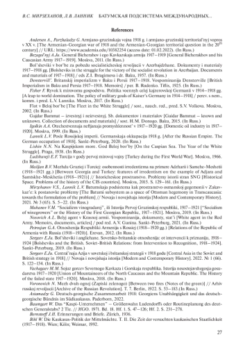 21. Astamadze G. Deutsch-georgische Zusammenarbeit 1918: Georgiens Unabhängigkeit und das deutsch-georgische Bündnis im Südkaukasus. Paderborn, 2022.