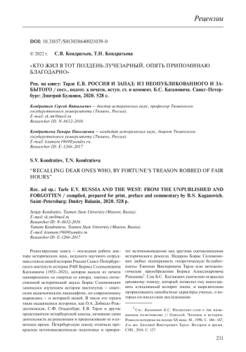 3. Каганович Б.С. Евгений Викторович Тарле. Историк и время. СПб., 2014. EDN: YNPKXT