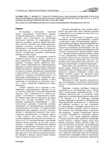 4. Камкин Г. Г. Барьерность городской среды и ее количественная оценка (на примере Москвы) // Известия Российской академии наук. Серия географическая. 2020. № 1. С. 27-36. ,. DOI: 10.31857/S2587556620010094 EDN: ISLVYB