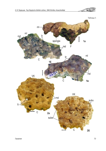 В верхнемеловых отложениях Поволжья впервые установлены губки Polyptycha. Скелет этих настоящих колоний характеризуется кустистым морфотипом, который осложнен анастомозом исходных модулей при их отвороте. Систематическое положение рода дискуссионно. Это обусловлено неполнотой представлений о морфологии разнообразных скелетов позднемеловых гексактинеллид и, соответственно, отсутствием кондиционных критериев таксонов уровня «семейство» и «род».