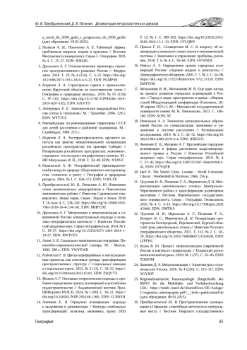 23. Кузин В. Ю. Процесс метрополизации современной России в контексте поляризации // Псковский регионологический журнал. 2019. № 1 (37). С. 33-45. EDN: TODFJM