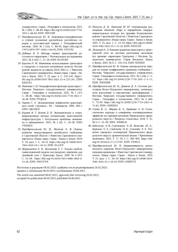 33. Преображенский Ю. В., Молочко А. В. Оценка развития междугороднего автобусного сообщения в Саратовской области // Известия Саратовского университета. Новая серия. Серия: Науки о Земле. 2019. Т. 19, вып. 1. С. 18-23. ,. DOI: 10.18500/1819-7663-2019-19-1-18-23 EDN: ELLJFZ