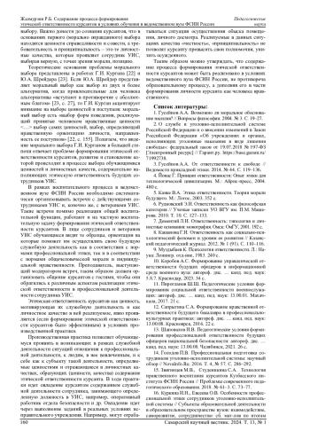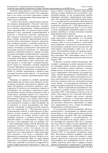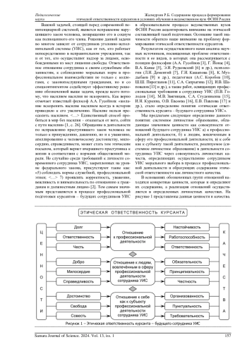 Статья: СОДЕРЖАНИЕ ПРОЦЕССА ФОРМИРОВАНИЯ ЭТИЧЕСКОЙ ОТВЕТСТВЕННОСТИ КУРСАНТОВ В УСЛОВИЯХ ОБУЧЕНИЯ В ВЕДОМСТВЕННОМ ВУЗЕ ФСИН РОССИИ (2024)