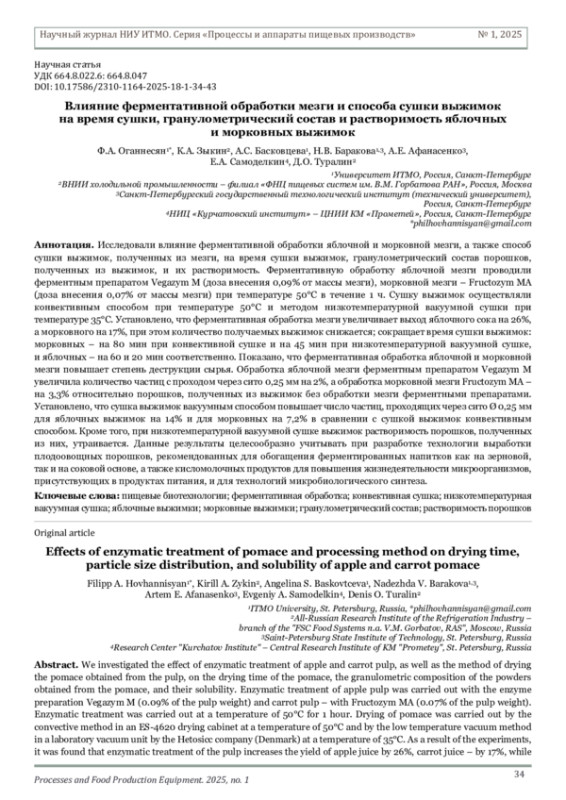2. Супрун Н.П., Гусаков Г.С., Раченко М.А. Ферментативный катализ яблочной мезги // Химия растительного сырья. 2023. № 1. С. 307-312. DOI: 10.14258/jcprm.20230111067
