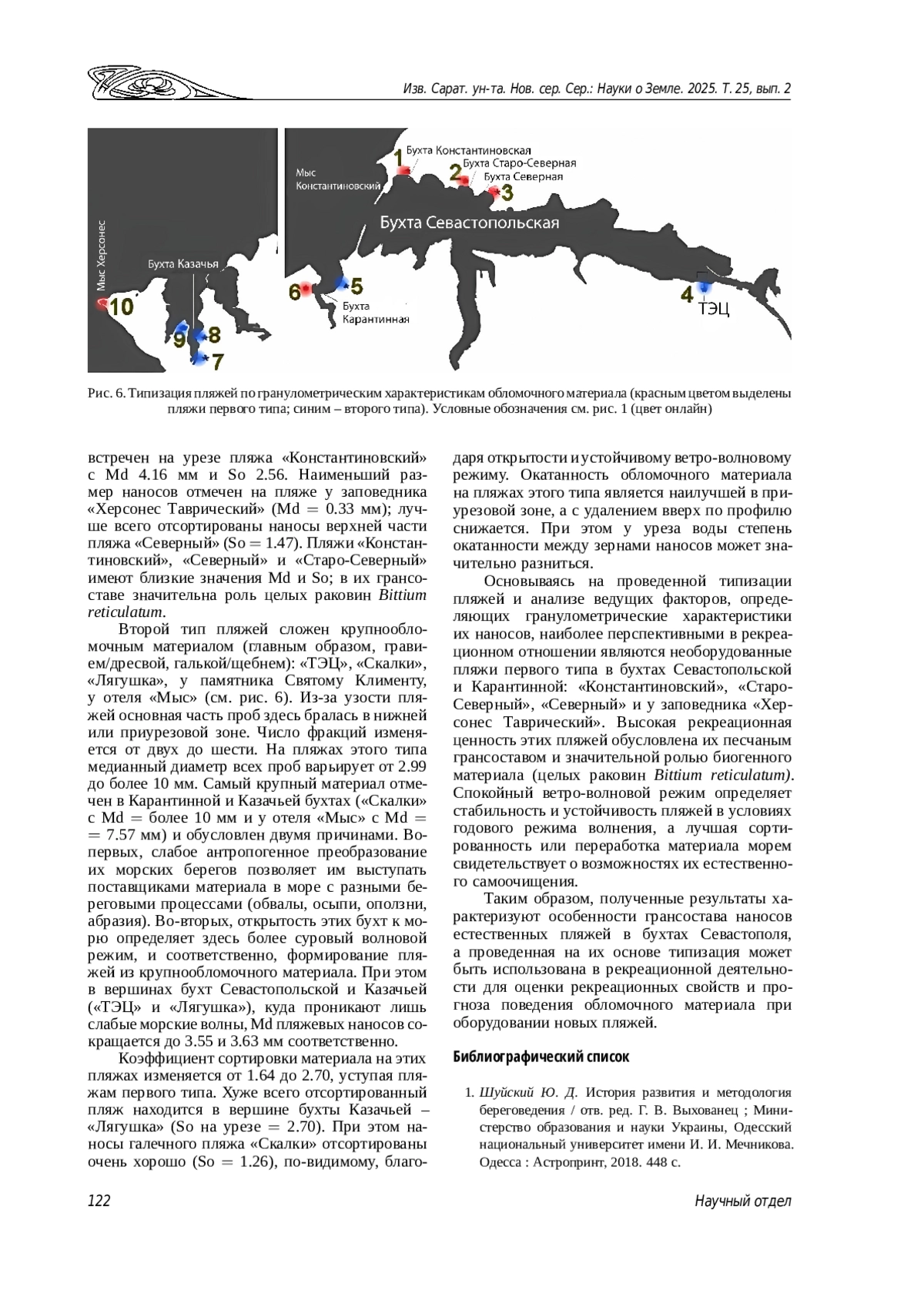 АГАРКОВА-ЛЯХ И. В., ЛЯХ А. М. ГРАНУЛОМЕТРИЧЕСКИЕ ОСОБЕННОСТИ ОБЛОМОЧНОГО МАТЕРИАЛА СОВРЕМЕННЫХ ПЛЯЖЕЙ СЕВАСТОПОЛЯ // ИЗВЕСТИЯ САРАТОВСКОГО УНИВЕРСИТЕТА. НОВАЯ СЕРИЯ. СЕРИЯ НАУКИ О ЗЕМЛЕ. 2025. Т. 25 № 2